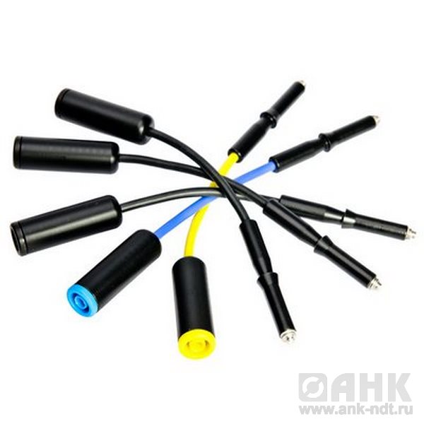 Представляют из себя изолированные проводники в изоляции из силикона и пластика. Одна из сторон адаптеров имеет стандартный разъем типа «банан» для подключения к проводникам измерительного прибора. Другая сторона представлена резьбовой втулкой, которая ввинчивается в доступные резьбовые клеммы типа M4 или M6 автоматических выключателей, шин или другие токопроводящие части электроустановки. Максимальный рабочий ток – 1 А, максимальное напряжение – 1000 В. Предназначены для использования с анализаторами качества электрической энергии серии PQM. Комплект – 5 шт.