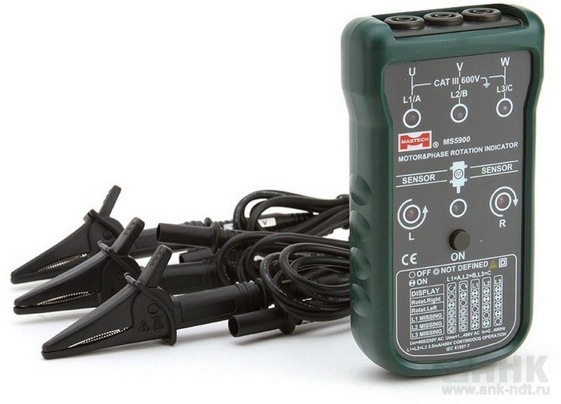 Индикатор чередования фаз MS5900 предназначен для определения порядка чередования фаз в трёхфазных цепях переменного тока, а также направления вращения трехфазных двигателей. Указанные преимущества позволяют обойтись портативным индикатором чередования фаз при несложных диагностических операциях вместо дорогостоящих приборов.