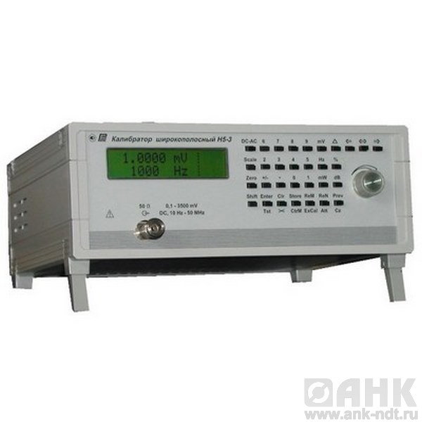 Калибратор переменного напряжения широкополосный Н5-3предназначен для воспроизведения напряжения переменного тока синусоидальной формы в широком диапазоне частот при поверке и калибровке вольтметров переменного тока. Дополнительной функцией прибора является воспроизведение напряжения постоянного тока любой полярности. Выход прибора рассчитан на подключение соединителей коаксиального 50-омного тракта размером 7/3мм. Выходное напряжение нормируется при подключении нагрузки сопротивлением 50 Ом.