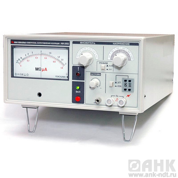 АМ-2082 предназначен для измерения сопротивления изоляции и высокоомных электрических цепей при различных рабочих напряжениях при проведении наладочных и ремонтных работ, а также при лабораторных исследованиях в условиях умеренного климата.