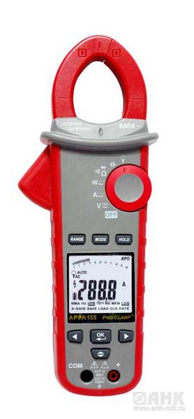 Многофункциональные электроизмерительные клещи-ваттметры (TRMS) c поддержкой преобразователя тока для измерения тока 0,1 - 3000 А (±3%) и автоматическим пересчетом показаний в амперах (опция APPA sFlex-10T/- APPA sFlex-18T). Автодетектирование типа сигнала AC/DC (перем./ пост.). Измерение I пер. тока (ACA): 0,1…600 А (± 1,5%, максимальное разрешение 0,01А), пусковой ток (INRUSH), измерение пост. тока (DCA): 0,1…600 А (± 1,5%, максимальное разрешение 0,01А), U пер и пост 0,01…1000 В (DCV ± 0,7%, макс. разреш. 0,01 В), мощность: 0,001…600 кВт (макс. разреш. 1 Вт), коэф. мощн.: -1,00…1,00, коэф. гармоник (THD%): 0,1…100% (до 25-й включительно), чередование фаз, сопротивл. до 100 кОм (разрешение 0,1 Ом), частота 20 Гц…10 кГц (напряж. / ток; разреш. 0,01 Гц), прозвон цепи (до 30 Ом) со световой сигнализацией, проверка диодов (p-n переходов), изм. емкости до 4 мФ (± 1,9%, максимальное разрешение 1нФ). Режим удержание, MIN/MAX/СРЕД, пиковые значения. Встроенный цифровой регистратор – 9999 ячеек, внутренняя память - 1000 результатов, ЖКИ с автоподсветкой 5 или 4 разряда (10.000/ 4.000), 3 изм/с, графическая шкала (50 сегментов), макс. диаметр 33 мм (шина 45х10 мм), ударопрочное исполнение (1,3 м), питание 6х 1,5 В, автовыкл. питания, масса 540 г. Навигация в меню с помощь клавиш, подсветка места измерения, бесконтактный датчик фазного напряжения (VoltSeek), фильтр НЧ , 103 х 243 х 55 мм, безопасность кат. IV 600 В/ кат. III 1000 В.