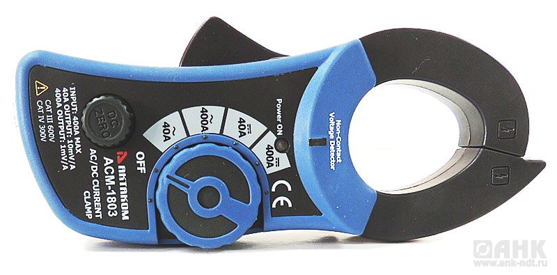 • Адаптер. Постоянный/переменный ток, 2 диапазона: 40 А/ 400 А, аналоговый выход: 1 мВ/А и 10 мВ/А, чувствительность 0,1 мВ/А и 1 мВ/А. Диаметр захвата 30 мм. Базовая погрешность 2,5%.