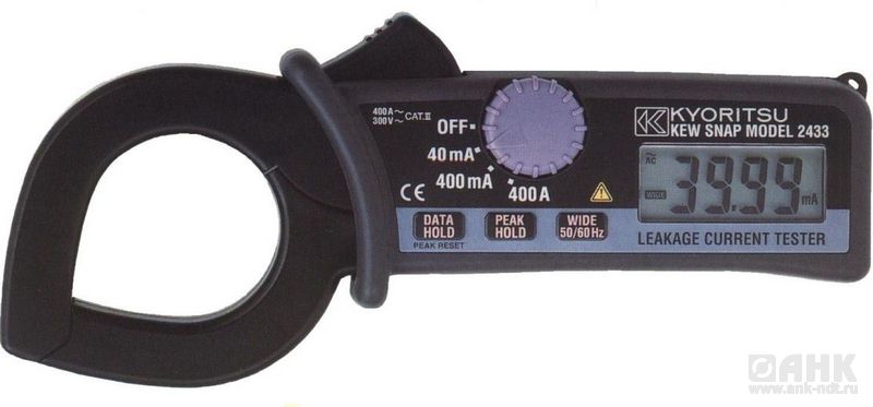 Не подвержен воздействию внешних магнитных полей; при измерении переменного тока и расстоянии между проводами 15 мм для диапазона 100 А погрешность составляет 10 мА (для 2433); переключатель выбора частоты для устранения гармоника; три диапазона измерения переменного тока: 400 мА/400 А (2433); функция запоминания данных; удержания пикового значения; режим «Sleep» для экономии батареи