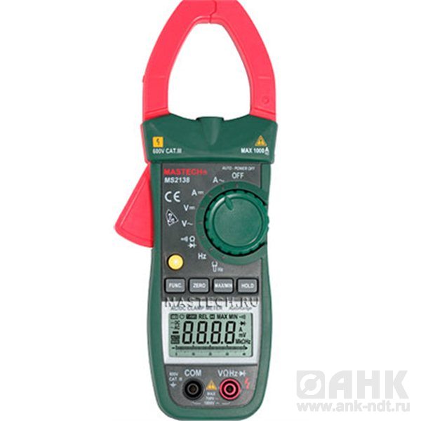 Токоизмерительные клещи MS2138 позволяют измерять бесконтактным способом силу тока, а так же с помощью щупов измерять величину напряжения, сопротивления и частоту.