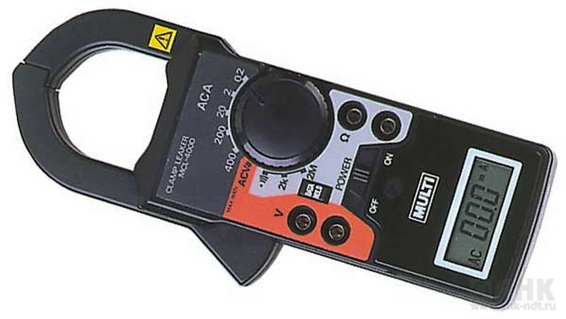 Клещи электроизмерительные, измерение переменного тока, пределы измерений 0,2/ 2/ 20/ 200/ 400 А (50/60 Гц) с  разрешением 0,1/ 1/ 10 мА/ 0,1/ 1 А, базовая погрешность 1 %, напряжение 0…600 В, сопротивление 0…2 кОм,  раскрытие 40 мм, 2 изм./сек, функция удержания показаний,  ЖК-дисплей (разрешение 1999), 2 х 1,5 В тип «ААА», 69 х 197 х 32 мм, 370 г.
