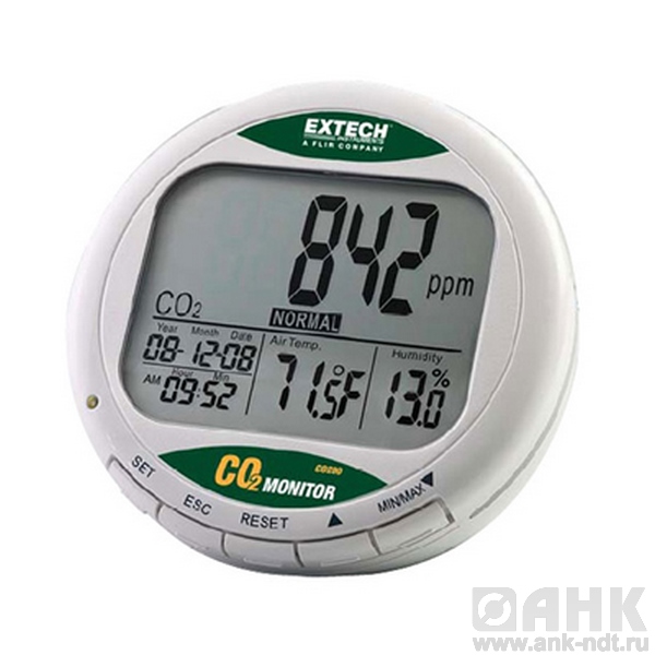 Особенности настольного измерителя качества воздуха и концентрации углекислого газа (СО2) Extech CO200: