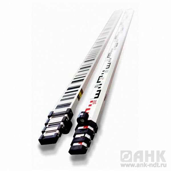 Алюминиевая телескопическая рейка для нивелиров Trimble DiNi. 4 секции по 1м. Кодовая шкала спереди и Е-градуировка сзади. Оборудована круглым уровнем. Вес 1.8 кг.