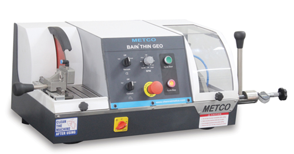 Настольный станок для резки и шлифовки (утонения), то есть подготовки тонких срезов петрографических образцов. Подготовка тонких срезов требует высокой точности и аккуратности. Станок Chennai Metco BainThin GEO представляет собой платформу для резки и шлифовки образцов толщиной до 30 мкм и меньше.