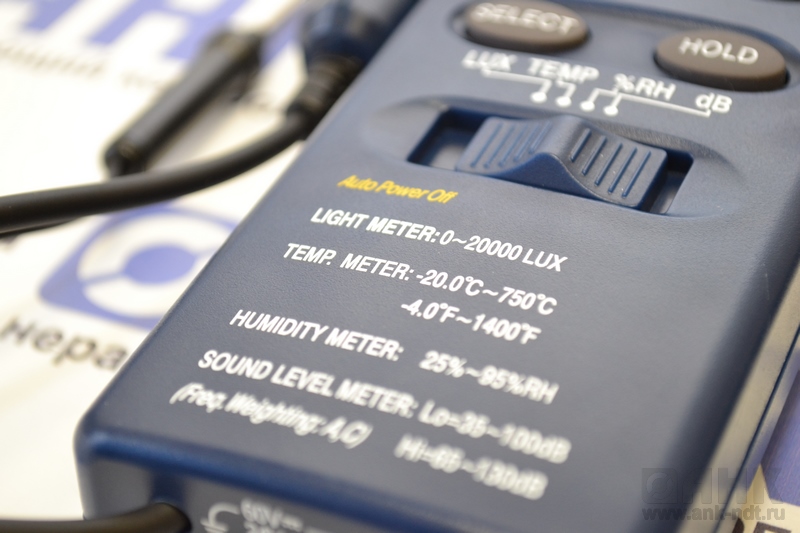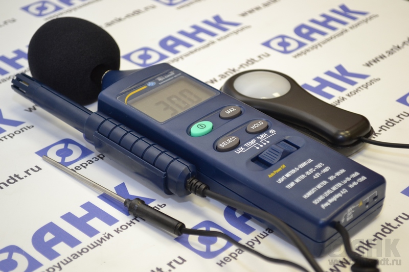 • Комбинированный прибор: влагомера, шумомера, измеритель освещенности и термометра