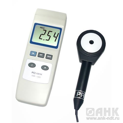 Люксметр PCE-UV34 для измерения уровня УФ облучения, сенсор UV, батарея, приборная сумка, руководство пользователя на русском языке.