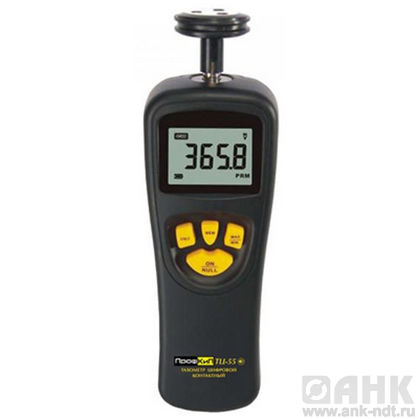 Тахометр цифровой контактный ПРОФКИП ТЦ-55. Тахометр приспособлен для измерения частоты вращения механизмов вального типа, а также для измерения скорости движения подвижных механизмов ленточного типа. Механизм работы электронного контактного тахометра основан на валовом контактном датчике, воспринимающем вращение движущихся элементов. Вращения вала преобразуются в цифровые сигналы, которые отображаются на дисплее тахометра.