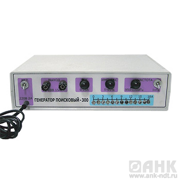 Генератор поиска ГП-300 предназначен для формирования мощного токового сигнала сигнальной частоты при определении мест залегания силовых кабелей или металлических трубопроводов и позволяет длительно выдавать в нагрузку мощность до 300 Вт. С помощью сигнала, формируемого генератором, можно определять места повреждения изоляции подземных трубопроводов.