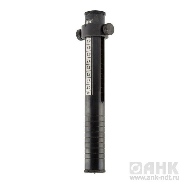 NOVOTEST ТПП-1518 представляет из себя цилиндр с установленной внутрь тарированной пружиной, нагружающей индентор, выступающий снизу из основания. Прибор имеет механизм, фиксирующий нагрузку и шкалу. С прибором поставляются 2 разные пружины, отличающиеся по диапазонам нагрузок, и 2 сменные шкалы.