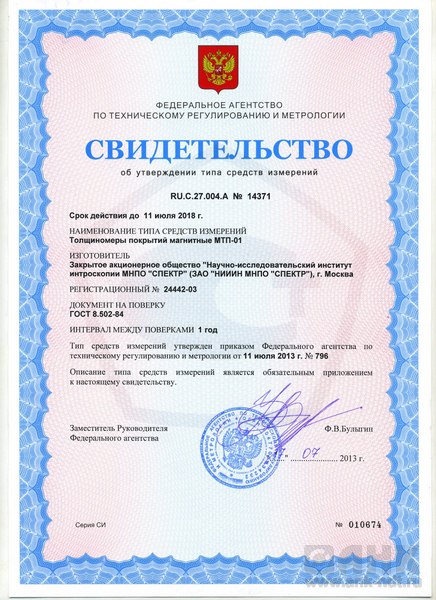НИИИН МНПО Спектр Толщиномер покрытий МТП-01 75000.00