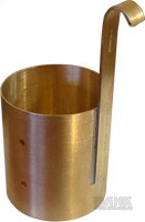 NOVOTEST ВМС - это цилиндрический латунный сосуд, имеющий ручку и три отверстия. Боковые отверстия находятся вдоль образующей цилиндра, нижнее отверстие - в центре основания.