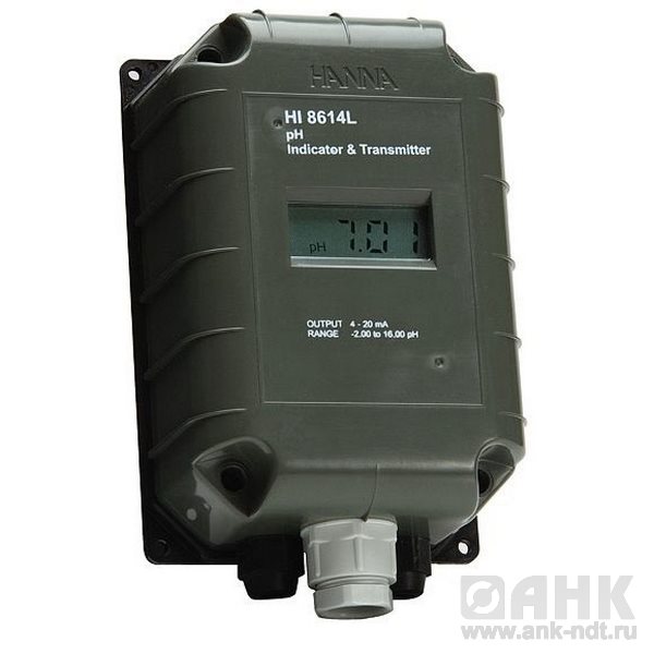 HI 8614L промышленный поточный водонепроницаемый pH-контроллер (трансмиттер) с ЖК экраном и термокомпенсацией.