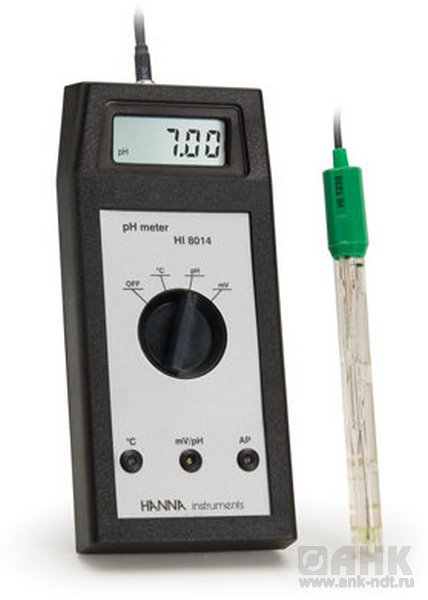 HI 8014 портативный рН-метр/ОВП-метр (pH/ORP) выполняет измерения pH с ручной температурной компенсации.