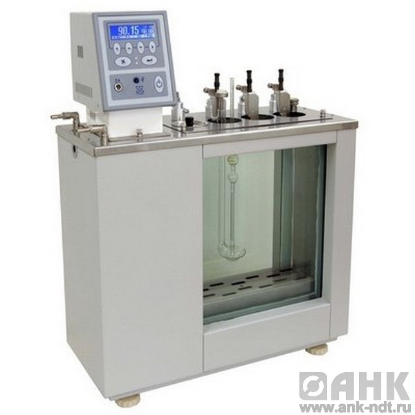 Постоянный уровень теплоносителя в промежутке между окнами внешней и внутренней ванн обеспечивается наличием буферной ванны. Такая конструкция исключает необходимость частого добавления теплоносителя. В стандартной 2-х ванновой конструкции при испарении теплоносителя его уровень между окнами внешней и внутренней ванн быстро снижается, что мешает наблюдению за вискозиметрами в процессе измерения.