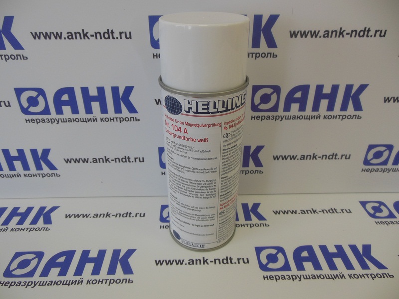 Белый контрастный грунт Helling NR-104A - суспензия белого пигмента в слаболетучем растворителе, не содержит хлорированные углеводороды. Имеет короткое время высыхания (около 2 мин. при 20°C). Образует гладкий равномерный фоновый слой на проверяемой поверхности для дальнейшего нанесения цветных суспензий. Наноситься слоем до 30 мкм.