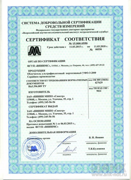 НИИИН МНПО Спектр Облучатель ультрафиолетовый портативный УФО-3-20Ф 49000.00