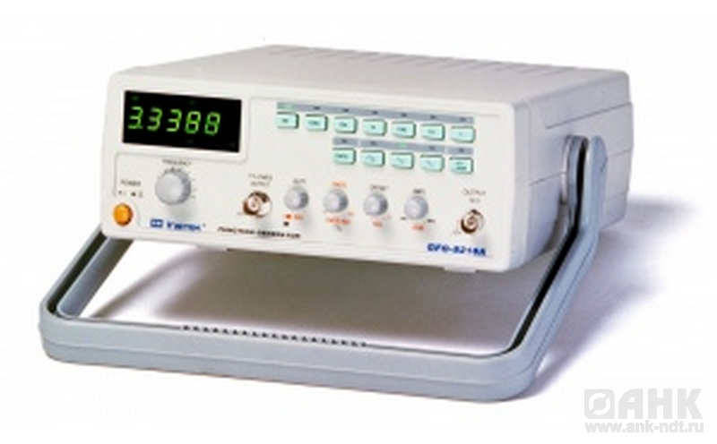 • 0,3 Гц-3 МГц, синус, треугольник, прямоугольник , цифровая индикация частоты, 10 В на 50 Ом, уровни ТТЛ и КМОП, частотомер до 150 МГц, масса 2,1 кг