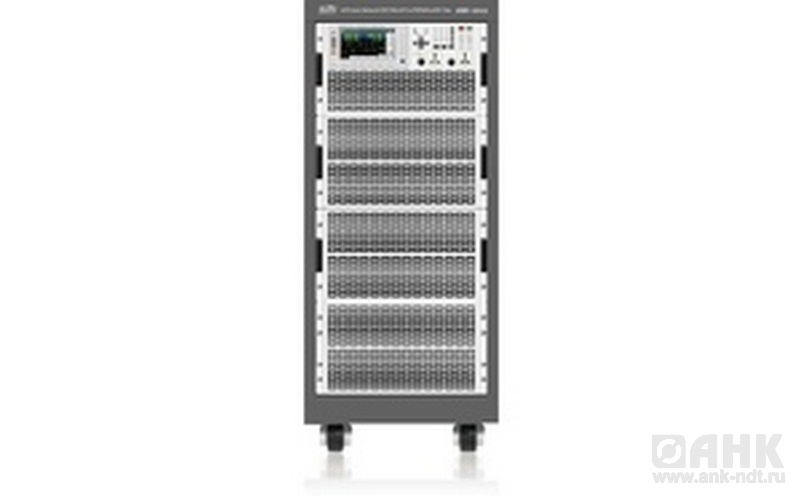 Источник питания переменного тока (3Ф). Выходное напряжение переменное 1…150 В/2…300 В (10…5000 Гц), с разрешением 0,01 В; макс ток в диапазоне 1…150 В, 432А пик, в диапазоне 0…300 В, 216 А пик; Мощность 54000 Вт / 18000 Вт на каждую фазу; фазовый угол 0…360°; коэф гармоник не более 0,5%; одновременная цифровая индикация В-А-Гц-cosф; защита от перенапряжения, перегрузки по току, по мощности, от перегрева. Интерфейсы USB, LAN, GPIB, RS-232, CAN. питание от сети 380 3ф.