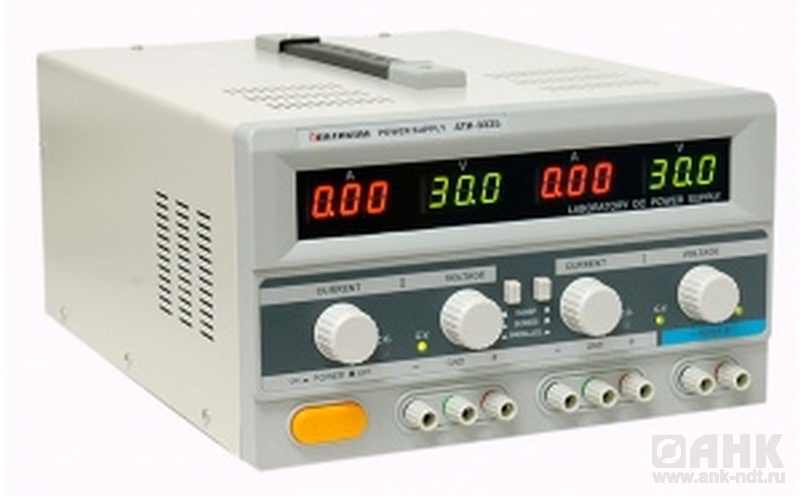 • 2x30 В, 2x5 А. 5 В/3 А. Линейный. 3 канала. 4 цифровых 3-х разрядных LCD дисплея. Последовательное и параллельное соединение регулируемых каналов. Трекинг. Бюджетная серия.