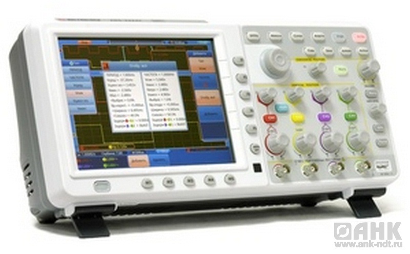 4 канала. Полоса пропускания - 200 МГц. Touchscreen дисплей. Частота дискретизации - 2 Гвыб/с. Макс. память - 7,6 М. Скорость захвата 50000 осц/сек. Входной импеданс: 1 МОм /50 Ом. Курсорные измерения. 20 автоизмерения. Матем. функции. БПФ . Интерполятор: линейный, Sin(x)/x. Усреднение. Пиковый детектор. Интерфейс: USB-host, USB-device, VGA, LAN. Дисплей: 20 см, цветной, TFT, 800 х 600. Вес: 1,5 кг. Размеры: 380 x 180 x 115 мм.