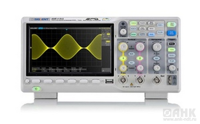 Осциллограф цифровой, 2 канала, полоса пропускания 100 МГц, макс. частота дискретизации 1 ГГц, память 7 МБ на канал (14 МБ - при объединении каналов.), скорость обновления до 400000 осциллограмм в секунду. Коэффициент отклонения от 500 мкВ/дел, авто- и курсорные измерения 38 параметров, расширенная синхронизация (фронт, скорость нарастания, длительность, ТВ, рант, логический шаблон), вход внешней синхронизации, математика (слож., вычит., умнож., дел., d/ dt, ?dt, ?), БПФ (память 1M), сегментированная память (до 80000 сегментов); режим HISTORY – запись/воспроизв. осциллограмм до 80000 кадров. Cинхронизация и декодирование сигналов I2C, SPI, UART/RS232, CAN, LIN. Цветной ЖК-дисплей с диаг. 17,8 см (8 х 14 дел; 800×480 точек), интерфейсы USB (сохранение данных/ ДУ), LAN. Масса и габариты: 2,5 кг, 312х134х150 мм.
