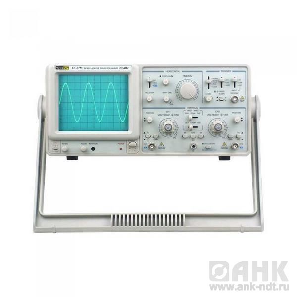 Осциллограф универсальный ПрофКиП С1-77М предназначен для исследования формы электрических сигналов путем визуального наблюдения на экране электронно-лучевой трубки (ЭЛТ) и измерения их амплитудных и временных характеристик. Осциллограф универсальный ПрофКиП С1-77М быть использован для контроля электрических параметров в промышленных и научных исследовательских лабораториях, ремонтных мастерских, учебных заведениях, в радиолюбительской практике.