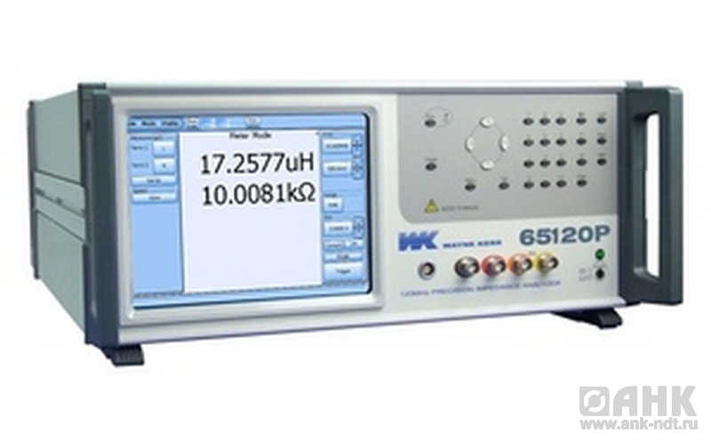Прецизионный ВЧ измеритель WK 65120B: Диапазон частот 20 Гц - 120 МГц (разрешение 0,01 мГц); Базовая погрешность 0,05 %; Сопротивление (R, Z) 0,01 мОм … 2 ГОм; Емкость 1фФ … 1Ф; Индуктивность 0,1 нГн … 2 кГн; Фазовый сдвиг -180 … +180o; Добротность (Q) 0,00001 … 1000; Тангенс угла потерь (D) 0,00001 … 1000; Реактивное сопротивление (X), комплексная проводимость Y (адмитанс), проводимость (G), реактивная проводимость (B); Отображение графика зависимости 2-х любых параметров от частоты (режим ГКЧ); Интерфейс USB (Подключение клавиатуры, мыши, внешних носителей), VGA, LAN, GPIB; Запись/считывание профилей (20 ячеек); TFT сенсорный дисплей 640 х 480; Масса 14,5 кг.