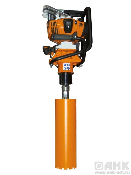 Установка алмазного бурения Goelz FB-200 бензиновая, рассчитана на бурение бетона, армированного бетона, природного и синтетического камня, асфальта, алмазными колонковыми бурами с подачей воды для отверстий диаметром от 50 до 200 мм.