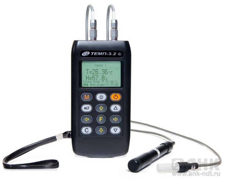 Термогигрометры ТЕМП-3.2 предназначены для измерения относительной влажности и температуры воздуха и определения точки росы. Двухканальные версии прибора ТЕМП-3.21...22 комплектуют дополнительным датчиком для измерения температуры поверхности контактным способом или температуры жидких, газообразных и сыпучих сред, в зависимости от выбора заказчика. Типовыми датчиками, поставляемыми с прибором являются: