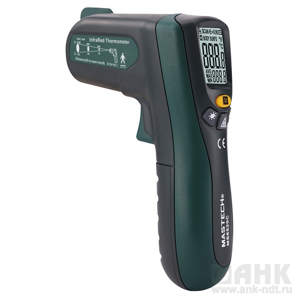 Цифровой пирометр MS6520A - дистанционный измеритель температуры , позволяющий измерять температуру поверхностей твердых тел бесконтактным способом.