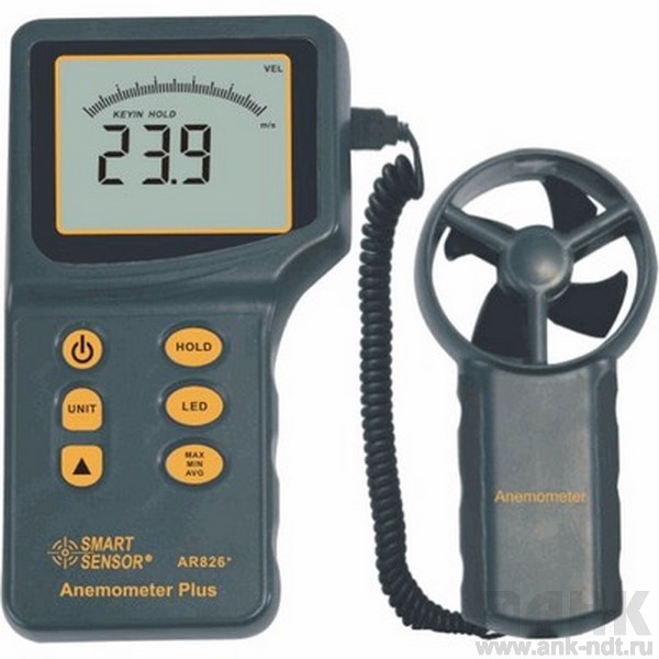 Цифровой анемометр AR826+ позволяет замерить скорость воздушного потока. С помощью функционала анемометра производятся базовые вычисления с измеренными значениями. В корпусе устройства встроен микрокомпьютер, на чьи плечи и ложится обработка измерений. В область использования анемометра попадает широчайший спектр отраслей, таких как металлопрокатная и нефтеперерабатывающая промышленности, энергетическая отрасль, сельское хозяйство. Электронный анемометр AR826+ является настоящей ветровой лабораторией.
