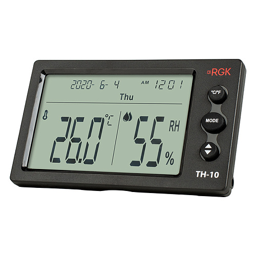 Электронный термогигрометр RGK TH-10 обновляет показания температуры и влажности раз в 10 с. Можно настроить прибор так, чтобы каждый час подавался звуковой сигнал, напоминающий о необходимости проверки климатических параметров. Отображение текущего времени и даты упрощает занесение данных в журнал и другую документацию.