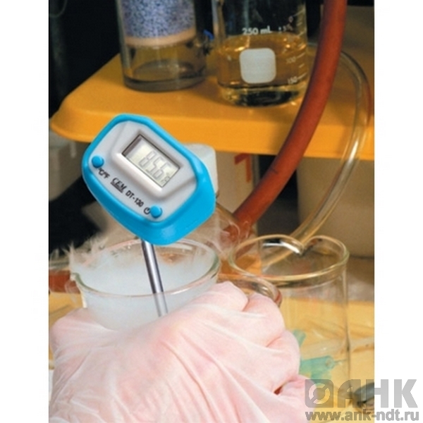 Перед началом работы с термометром необходимо снять защитный чехол, нажать кнопку «ON/OFF» (Вкл./Выкл.) и разместить измерительный щуп (не менее, чем на половину своей длины) в измеряемой среде.