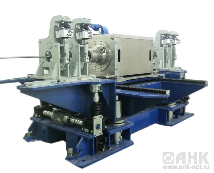 Конструктивно установка состоит из двух промышленных 19" стоек и станины с ротационным блоком контроля и механизмами протяжки. На контроль трубы подаются, поочередно, отдельно друг от друга либо состыкованные друг с другом. Контролируемая труба, подается в механизм протяжки на входе установки, который перемещает трубу в узел центровки, откуда она попадает в блок ротационного контроля. При выходе из блока ротационного контроля и механизма центровки, труба попадает во второй (выходной) механизм протяжки, который подает ее в приемный лоток.