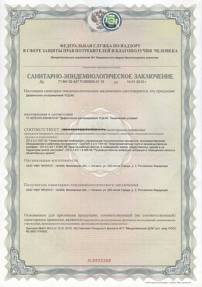Описание ультразвукового дефектоскопа УСД-60ФР