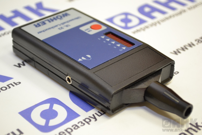Двигайтесь вдоль контролируемого трубопровода, направив на него прибор приемным торцом и надев головные телефоны. При возникновении характерного шума в телефонах продолжайте движение, следя за изменением уровня шума. Увеличение уровня шума свидетельствует о приближении к месту течи, уменьшение — об удалении. Поворачивая прибор и используя тем самым направленные свойства приемника, зафиксируйте направление на область повышенного шума.