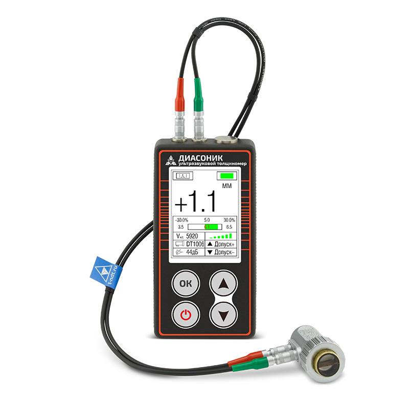 Индикатор дефектов (толщиномер) ультразвуковой Диасоник предназначен для поиска дефектов и измерения толщины основного слоя изделий из черных и цветных металлов, таких как: стенки труб, баллонов, котлов и других . Поддерживает работу со всей линейкой раздельно-совмещенных преобразователей с частотой 2.5Мгц, 5Мгц, 10Мгц благодаря настраиваемому усилению.