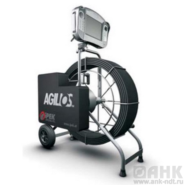 Проталкиваемая система телеинспекции Agilios состоит из алюминиевого ковера с 30, 60 и 90-метровым гибким кабелем, универсального пульта управления VisionControl и поворотной камеры PTP70, которая была сконструирована в соответствии с самыми взыскательными запросами для проталкиваемых систем телеинспекции в этой отрасли.