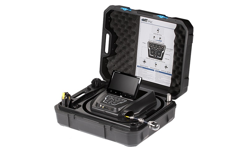 Система телеинспекции eVIT PSC представляет собой современный набор инструментов, помогающих обнаружить дефекты и посторонние предметы в трубопроводах, сосудах и прочих скрытых труднодоступных полостях. Устройство широко используется при проверке канализационных систем, систем центрального кондиционирования, дымоходов, водопроводов, стен зданий, кабель-каналов, вентиляционных систем и т.д. Уникальность системы PSC состоит в том, что она позволяет подключать к себе купольные камеры с дистанционной фокусировкой и регулировкой угла наклона и поворота, а так же зонды технических эндоскопов.