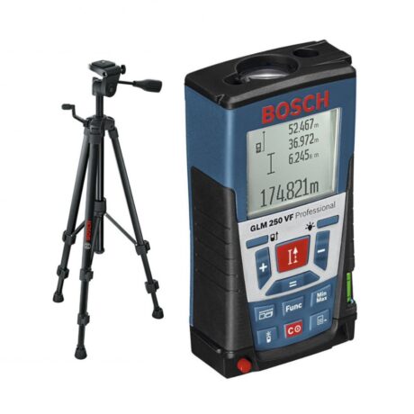 Bosch GLM 250 VF профессиональный лазерный дальномер имеет очень большую дальность действия (до 250 м.), а также встроенный прицел, для оптимальной видимости лазерной точки на расстоянии до 250 метров.