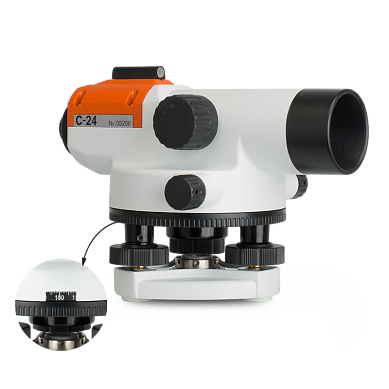 Качественная оптика прибора обеспечивает прямое изображение с 24-кратным увеличением, что гарантирует комфорт оператора и минимизирует ошибку измерения. Средняя квадратическая ошибка RGK C-24 составляет 2 мм на километр двойного хода – такой точности достаточно для эффективного решения большинства измерительных задач. Встроенный воздушный компенсатор устраняет ошибку при горизонтировке прибора.