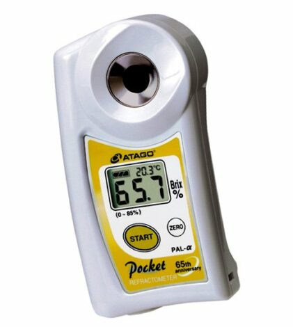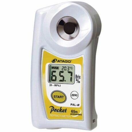 • Ручной цифровой рефрактометр PAL-α имеет большой диапазон измерений (0-85%) и имеет невысокую стоимость. PAL-α используется для измерения большого колличества образцов. Во всех случаях, когда концентрация веществ находится в диапазоне 0-85%Brix, можно использовать PAL alpha. PAL-α водонепроницаем, поэтому его можно мыть под струей воды. PAL-α обладает такими же достоинствами, как и остальные рефрактометры серии PAL. Для контроля точности рефрактометра во всём диапазоне используйте рефрактометрические жидкости «Сахарозка». Поверка рефрактометра PAL-α осуществляется в аккредитованной лаборатории АНК и занимает от 1 до 5 дней.