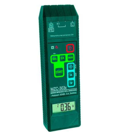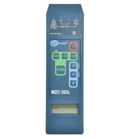 Измерители параметров цепей электропитания зданий MZC-303E (далее по тексту: измерители) представляют собой портативные электрические цифровые измерительные приборы. На торцевой панели измерителей расположены четыре однополюсных гнезда для подключения соединительных проводов. На верхней панели измерителей расположен жидкокри­сталлический цифровой дисплей и клавиши управления режимами работы, которые позволяют включать и выключать электропитание, запускать режим измерения активного и полного сопротивления, а также позволяют управлять чтением результатов измерений и вычислений.